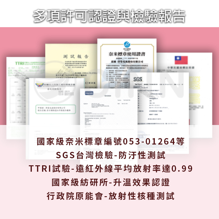 夾層-100%聚酯纖維(奈米遠紅外線、鍺、鈦、白金、火山岩)